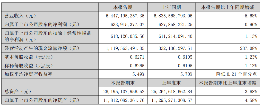 今年上半年,许继电气实现营业收入64.47亿元,同比下滑5.68%;毛利率23.75%,同比提升2.85个百分点;实现归属于母公司股东的净利润6.34亿元,同比增长0.96%,经营活动产生的现金流量净额11.20亿元,同比增长237.08%,研发投入2.63 亿元,同比增长9.21%。