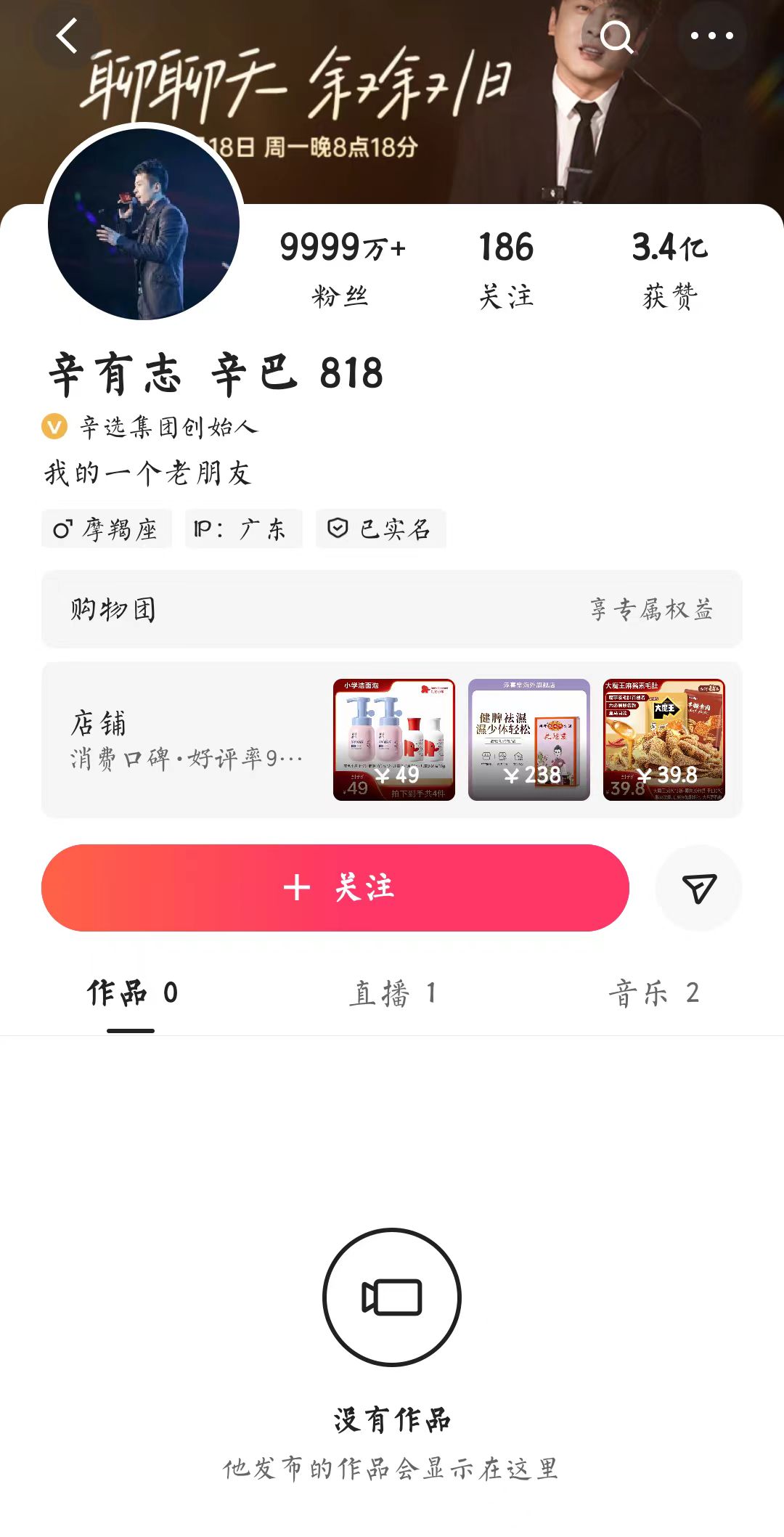 【大河财立方消息】8月21日,快手显示,辛巴账号作品已经清空,仅剩一条直播回放,其粉丝量仍然是9999万+。