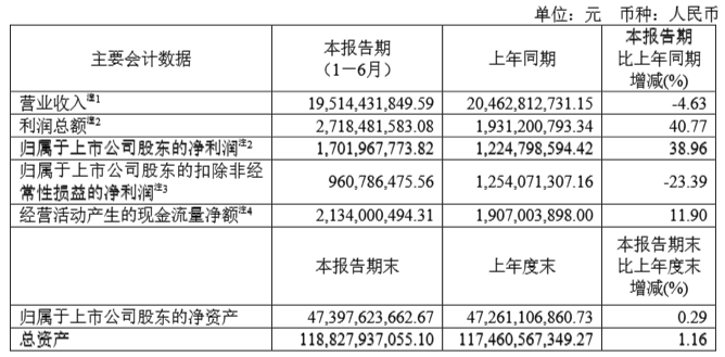报告显示,复星医药上半年实现营业收入195.14亿元,同比下降4.63%;实现归属于上市公司股东的净利润17.02亿元,同比增长38.96%。
