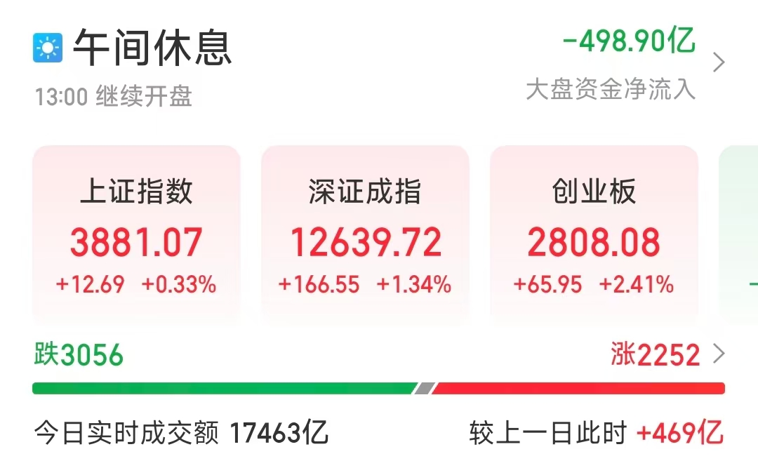 【大河财立方消息】8月27日,A股震荡走高,截至午间收盘,沪指涨0.33%,深证成指涨1.34%,创业板指涨2.41%,突破2800点整数关口;科创50指数涨4.16%。全市场成交额1.75万亿元,较上一个交易日放量469亿元。
