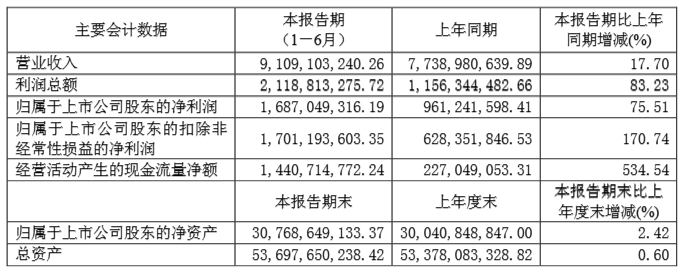 报告显示,2025年上半年中国巨石实现营业收入91.09亿元,同比增长17.70%;归属于上市公司股东的净利润为16.87亿元,同比增长75.51%。