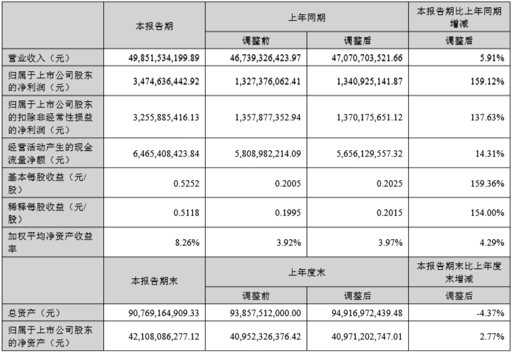 报告显示,2025年上半年,温氏股份实现营业收入498.52亿元,同比增长5.91%;归属于上市公司股东的净利润34.75亿元,同比增长159.12%;基本每股收益0.52元。