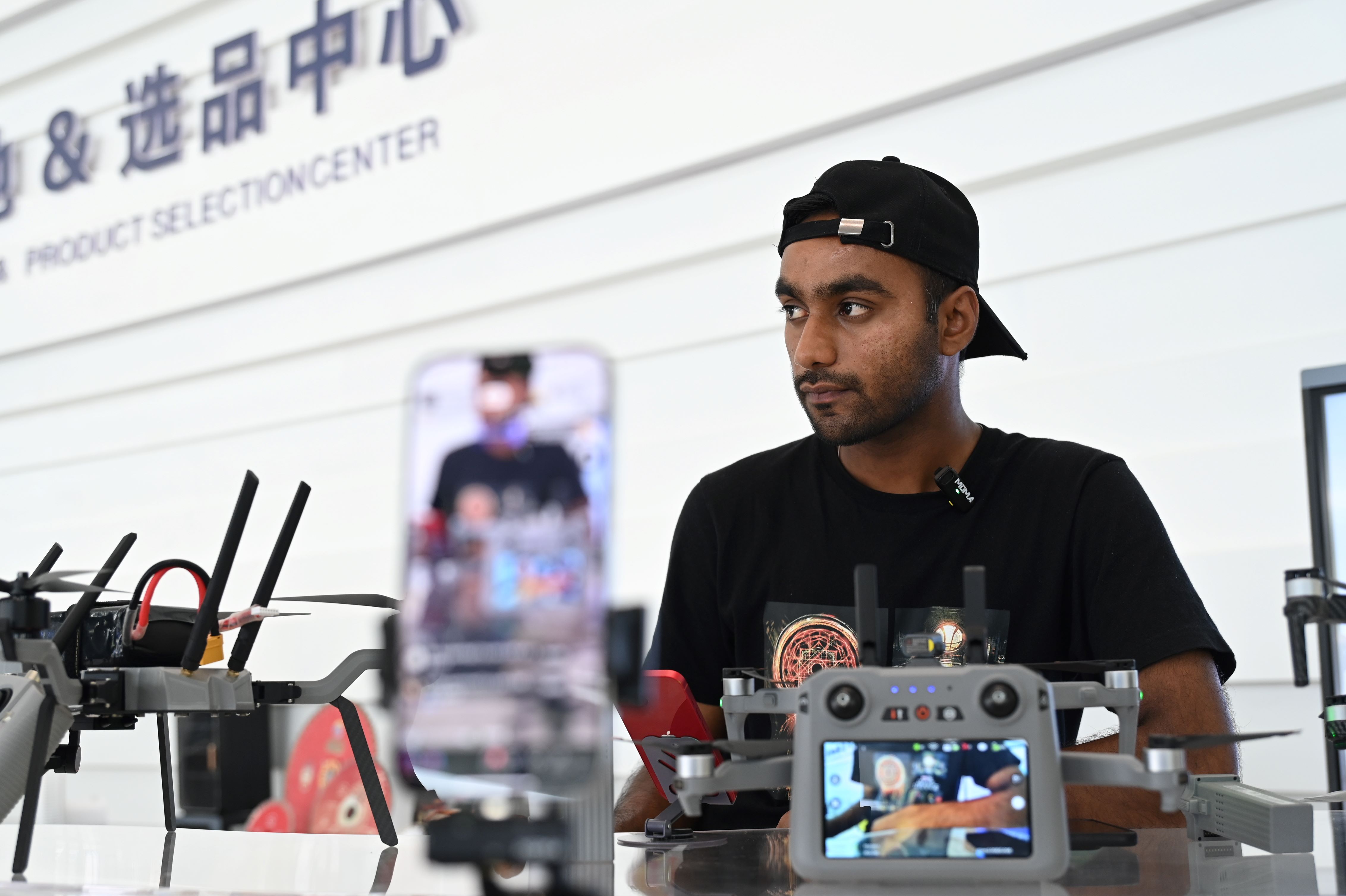 当天上午,记者在产业园看到,巴基斯坦籍主播阿布正在TikTok直播间向北美消费者推荐无人机。客户下单后,这些来自深圳的无人机将从鄂州飞向世界。