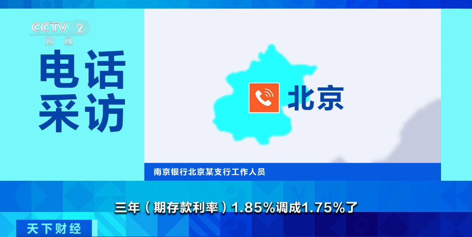 南京银行北京某支行工作人员:上周五,三年(期存款利率)1.85%调成1.75%了。