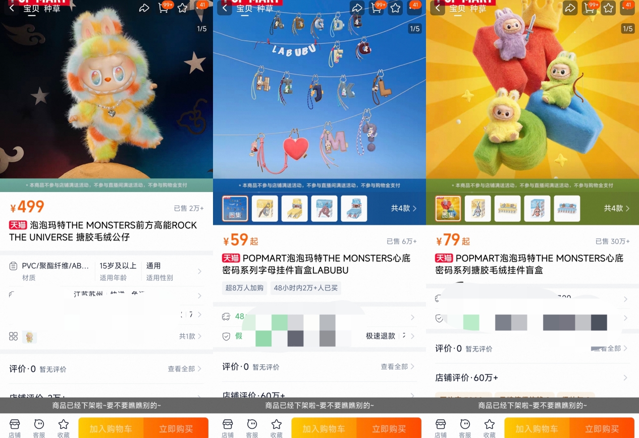 8月28日22:00,LABUBU多款新品在淘宝、京东、抖音等多电商平台上线并迅速售罄。记者注意到,此次新品发售,除了迷你版LABUBU,还有新款彩色LABUBU、字母挂件盲盒等产品。