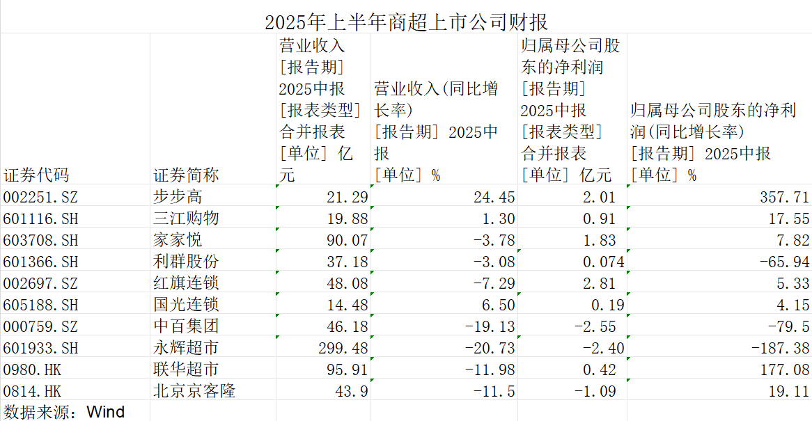今年上半年商超上市公司业绩依旧处于承压态势。
