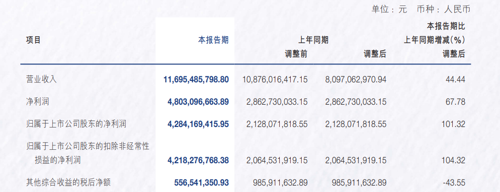 【大河财立方消息】8月29日,申万宏源披露2025年半年度报告。公司2025年上半年营业收入116.95亿元,同比增长44.44%;归属于上市公司股东的净利润42.84亿元,同比增长101.32%。