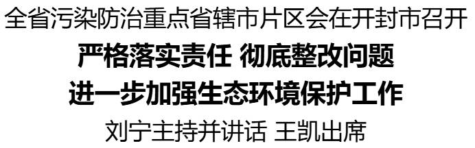 8月29日,全省污染防治重点省辖市片区会在开封市召开,省委书记刘宁主持并讲话。他强调,要深入学习贯彻习近平生态文明思想和习近平总书记在河南考察时重要讲话精神,落实中央有关部署,着力加强生态环境保护,深化污染防治攻坚,确保生态环境质量明显改善、全面改善、持续改善,为奋力谱写中原大地推进中国式现代化新篇章厚植绿色底色。省长王凯出席。