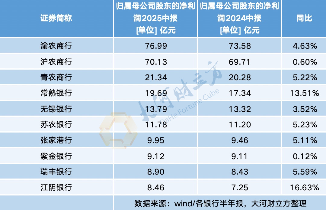 【大河财立方 记者 陈玉静】8月30日,随着沪农商行半年报的披露,A股10家上市农商行的半年报已披露完毕。