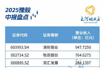 今年上半年,13家豫股营收规模超百亿元,数量较去年增加1家。其中,洛阳钼业、牧原股份、双汇发展依然稳居豫股营收前三名。