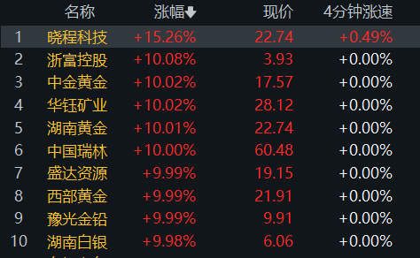 A股多个黄金股也随之大涨,其中,晓程科技涨超15%,浙富控股、中金黄金、湖南黄金、西部黄金等个股纷纷涨停。