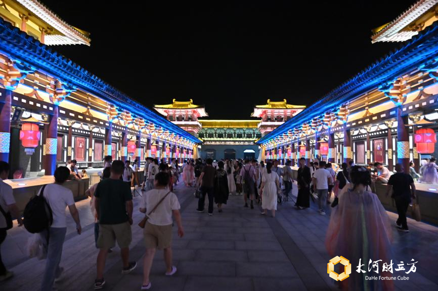 走进襄阳盛世唐城、十堰武当一梦等园区,白天在室外还看不到几个游客,傍晚开始,人流量骤增。