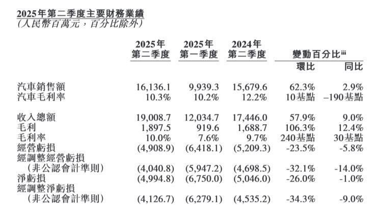 蔚来今年第二季度财报数据显示,本季度实现营收190亿元,同比增长9%;第二季度交付汽车7.2万辆,同比增长25.6%,其中蔚来品牌4.7万辆、乐道品牌1.7万辆、firefly萤火虫品牌0.78万辆。不过,蔚来第二季度的车辆毛利率只有10.3%,距离理想汽车、小鹏汽车还有较大差距。
