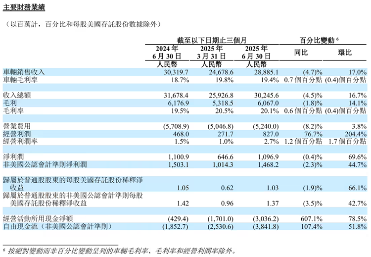 对此,理想汽车表示,营收出现同比下滑,主要原因为第二季度理想汽车车辆交付量虽有增长,但车辆平均售价有所降低。2025年上半年,理想汽车总交付量20.39万辆,同比增长7.9%。其中,第二季度单季汽车交付量11.11万辆,同比增长2.3%。在这样的情况下,公司净利润依然可以保持稳定,得益于成本控制能力的提升。