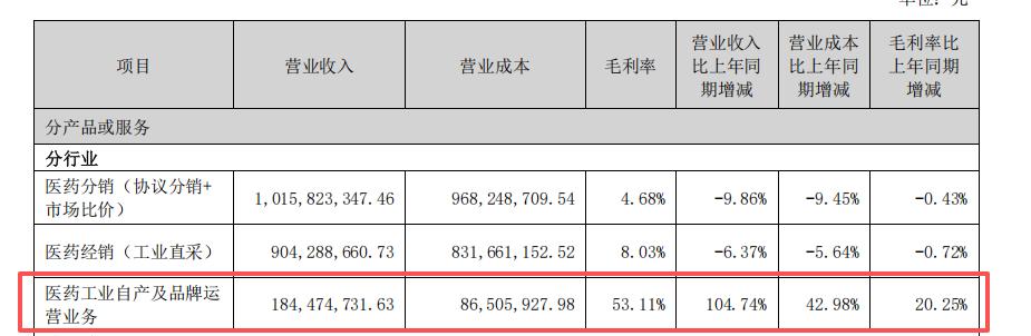 此外,传统业务增长乏力的药易购,其新板块医药工业自产及品牌运营业务却实现快速增长。财报数据显示,2025年上半年,该公司医药工业自产及品牌运营业务实现营收1.84亿元,同比增长104.74%,毛利率53.11%,同比显著提升。