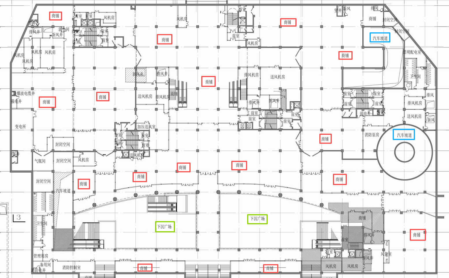 郑州综合交通枢纽地下交通(东广场)人防工程 北区负一层平面图