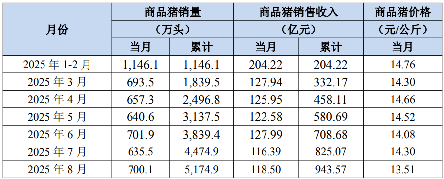 【大河财立方消息】9月5日,牧原股份披露8月份销售简报。