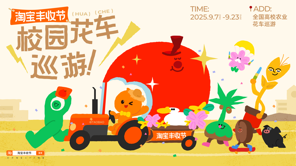 为更好激发年轻人投身乡村振兴的热情,今年丰收节期间,淘天集团开展高校农研活动,联合全国多所涉农高校,共同开展“淘宝丰收节校园花车巡游”。高校团队精选各自高校特色农研产品,结合校园特色装置花车巡游,为2025年农民丰收节注入年轻力量。