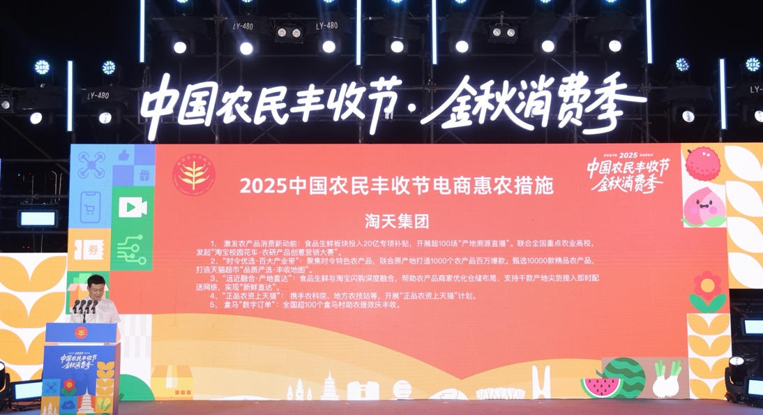 【大河财立方 记者 陈薇】9月5日,2025中国农民丰收节金秋消费季在杭州隆重举行。作为扎根浙江的国内电商集团,淘天集团宣布投入20亿专项补贴支持丰收节,组织旗下包括淘宝闪购、食品生鲜行业、天猫超市、淘宝直播等多场景业务形态积极参与。淘天集团淘宝天猫副总裁宋涛表示,淘天集团采取线上和线下融合的方式,重点突出年轻创新;充分发挥平台的数字化优势及多元营销手段,兼顾声量与销量,助力此次金秋消费季的开展。