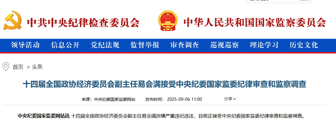 十四届全国政协经济委员会副主任易会满涉嫌严重违纪违法,目前正接受中央纪委国家监委纪律审查和监察调查。