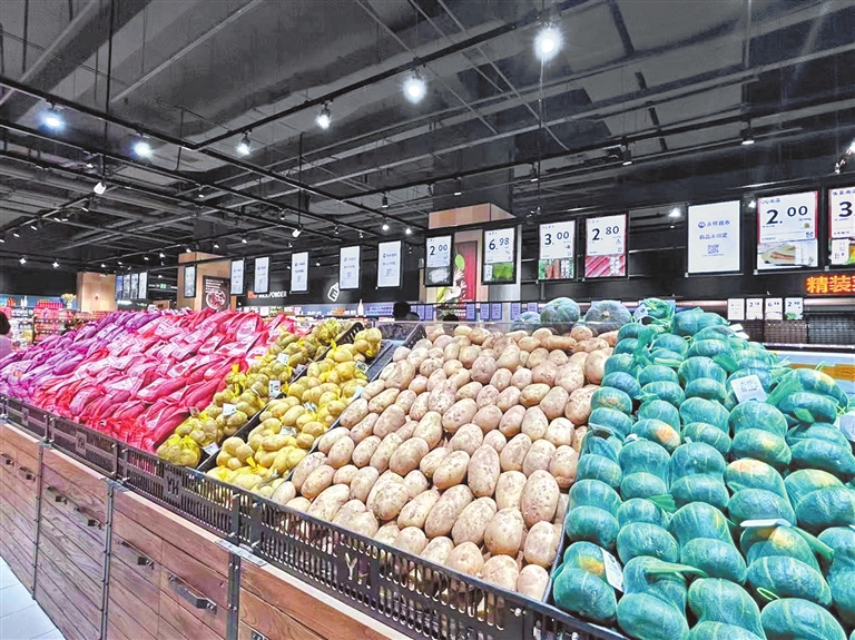 郑州一家永辉超市,各类蔬菜在货架上井然有序。