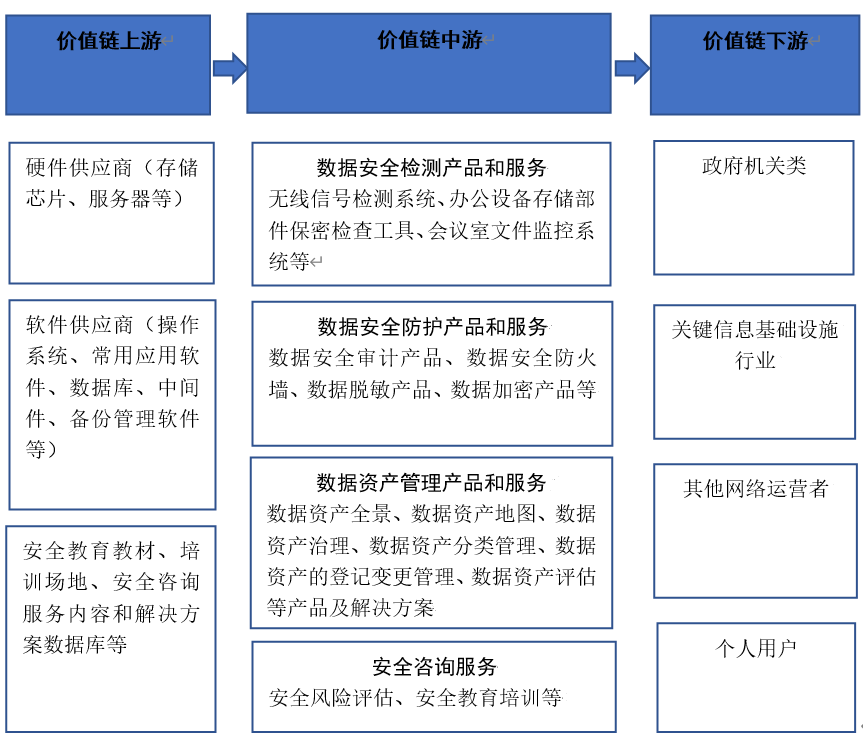 下游是数据需求方,涉及所有产生和处理数据的行业领域。其中,政务领域是数据安全建设的先行者,如各级政府、公共事业部门;金融领域对数据安全要求极高,如银行、证券、保险等;电信与运营商领域拥有海量用户数据,是数据安全建设的重要市场;能源、交通、医疗、教育等关键信息基础设施行业及互联网企业及广大中小企业。