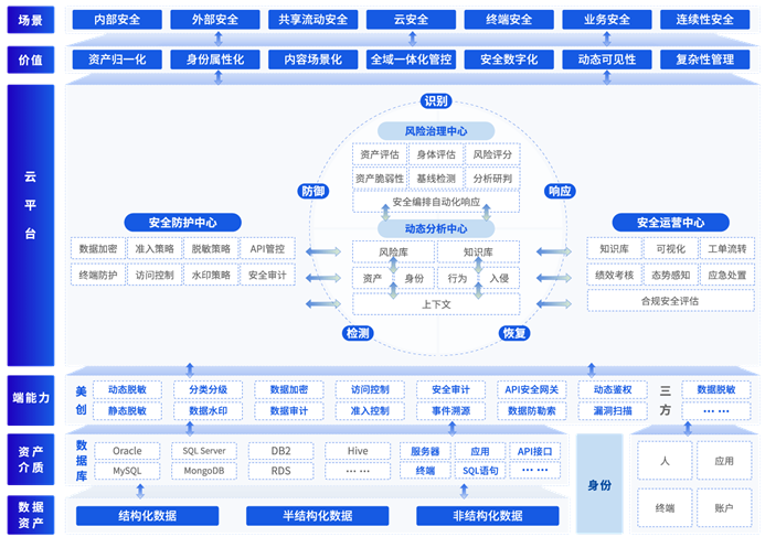中游作为核心供给端,提供直接的数据安全产品、解决方案和专业服务。产业主体类型包括综合型网络安全厂商,提供全面的网络安全产品线,并将数据安全作为重要业务板块,提供整体解决方案,如奇安信、启明星辰、天融信、绿盟科技等;专业型数据安全厂商,专注于数据安全垂直领域,产品和技术更具深度,如安华金和、美创科技、世平信息等;云服务商与互联网巨头,基于自身的云平台,提供原生的加密服务、数据库审计、数据安全中心等数据安全服务,如阿里云、腾讯云、华为云等;初创型技术企业,专注于隐私计算、AI安全、区块链等新兴技术领域,提供创新解决方案。