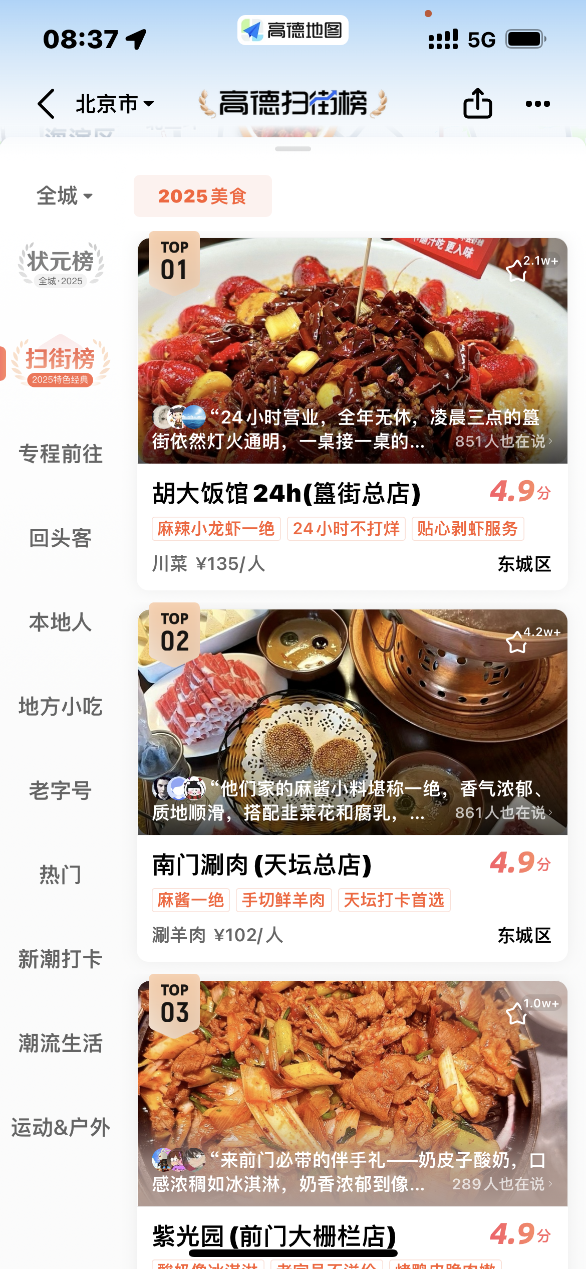 对于一个榜单来说,真实可信的评分是内核,全面丰富的信息是基础。在此基础上,高德扫街榜推出了很多独有的特色榜单。