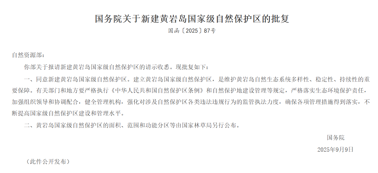 9月10日,国务院批复,同意新建黄岩岛国家级自然保护区。