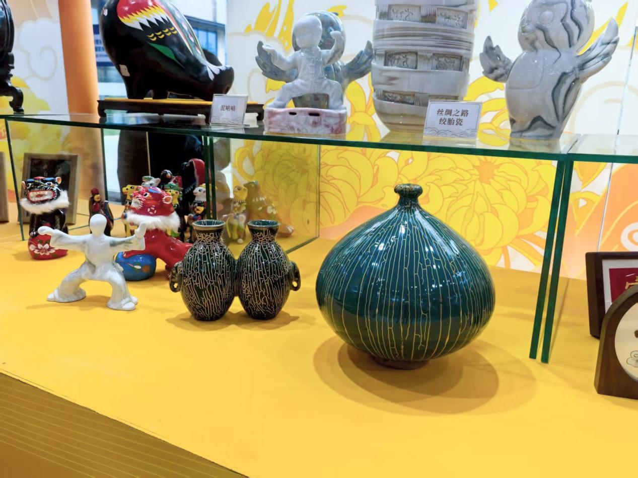 每一件郑商瓷作品都凝聚着千年窑火传承的匠心智慧;精美绝伦的汴绣团扇以针为笔、以线为墨,在方寸之间勾勒出中华传统美学的独特韵味。这些精美展品不仅展现了传统工艺的高超水准,更体现了其在当代审美下的创新表达。