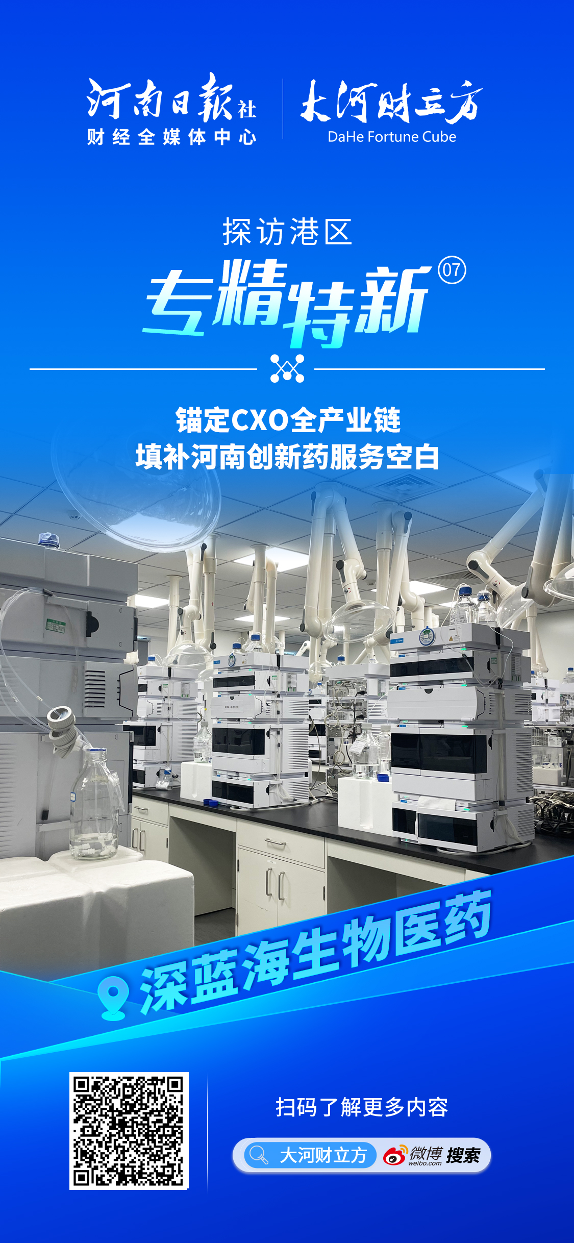 为立体展示郑州航空港区专精特新的发展成果,大河财立方携手航空港区科技工信局,推出《探访港区专精特新》系列报道,解码企业如何以“一米宽百米深”的专注,在全球产业链上刻下“港区坐标”的创新故事。本期刊登《深蓝海生物医药:锚定 CXO 全产业链,填补河南创新药服务空白》。
