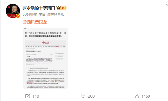 【大河财立方消息】“罗永浩吐槽西贝使用预制菜”事件的影响还在持续发酵,双方都释放出了强硬态度。