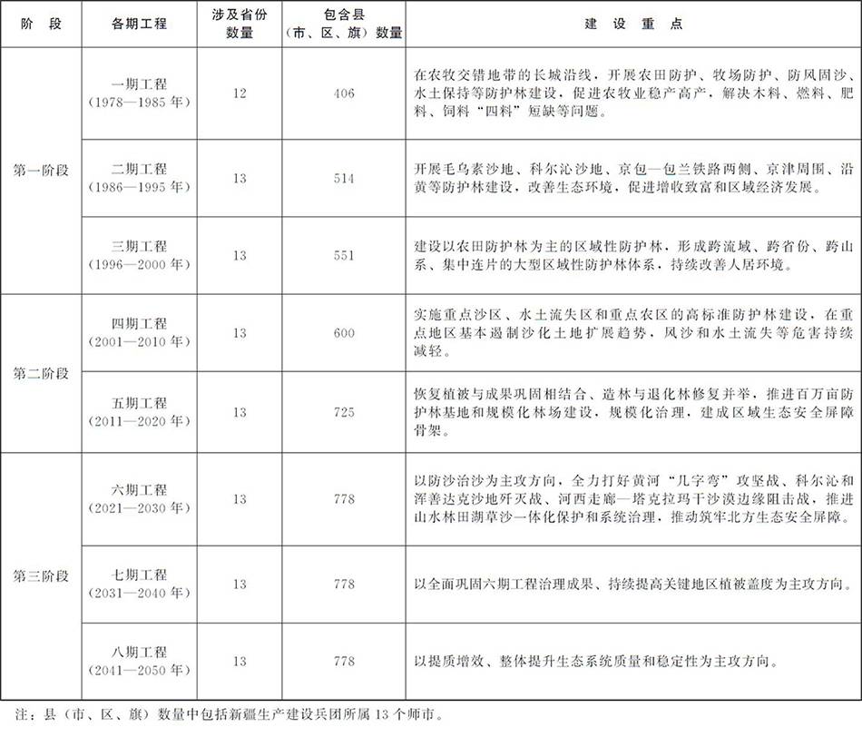 “三北”工程分期及建设重点
