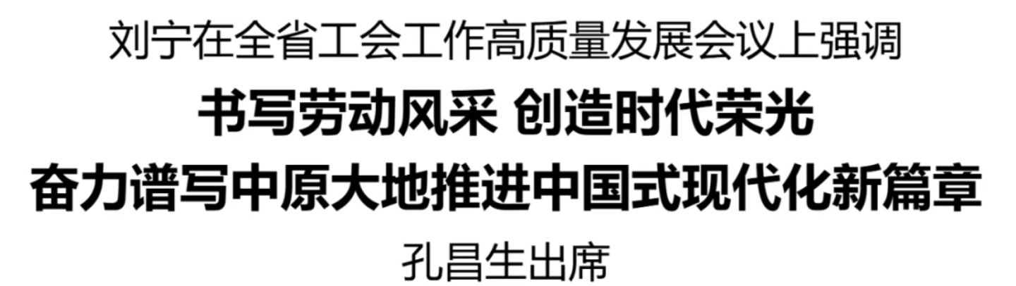 9月17日,全省工会工作高质量发展会议在郑州召开,省委书记刘宁出席并讲话,强调要深入学习贯彻习近平总书记在庆祝中华全国总工会成立100周年暨全国劳动模范和先进工作者表彰大会上的重要讲话精神、在河南考察时重要讲话精神,在新的历史起点上推动工会工作高质量发展,动员激励全省工会组织和职工群众牢记嘱托、团结奋进,在奋力谱写中原大地推进中国式现代化新篇章中书写劳动风采、创造时代荣光。省政协主席孔昌生出席。