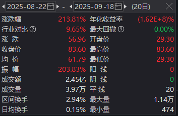 自8月22日,天普股份首次涨停,至9月18日,天普股份累计涨幅达213.81%,成交额2.45亿元。