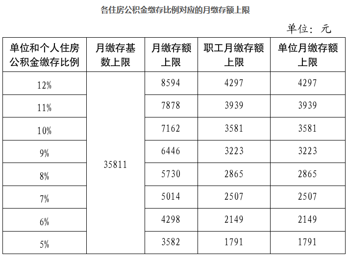 2025住房公积金年度住房公积金月缴存基数上限为35811元,具体缴存比例对应月缴存额上限见附件;自2025年9月1日起,住房公积金月缴存基数下限调整为2540元,领取基本生活费职工的月缴存基数下限为1778元,新受理的住房公积金个人住房贷款,计算借款申请人贷款金额所使用的月基本生活费标准按1778元执行。