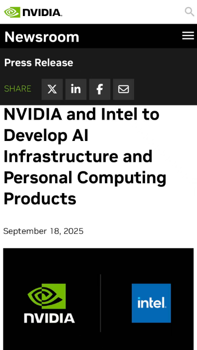 【大河财立方消息】9月18日,英伟达宣布与英特尔建立合作关系。