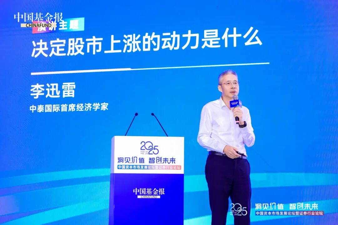 9月17日,由中国基金报主办的“2025中国资本市场发展论坛暨证券行业论坛”在上海举办,中泰国际首席经济学家李迅雷在论坛上发表主题演讲,演讲题目为《决定股市上涨的动力是什么?》。