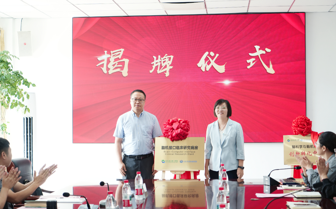 随后,双方领导共同为“脑科学与脑机接口创新转化中心”、“脑机接口临床研究病房”揭牌。该创新转化中心将依托翔宇医疗的产业化能力与山东省立第三医院在神经康复领域的丰富临床病例与诊疗经验,加快脑机接口与神经调控等关键技术研究与临床转化,推动实验室前沿技术快速转化为适配临床场景的康复方案,助力提升我国康复医疗技术水平。