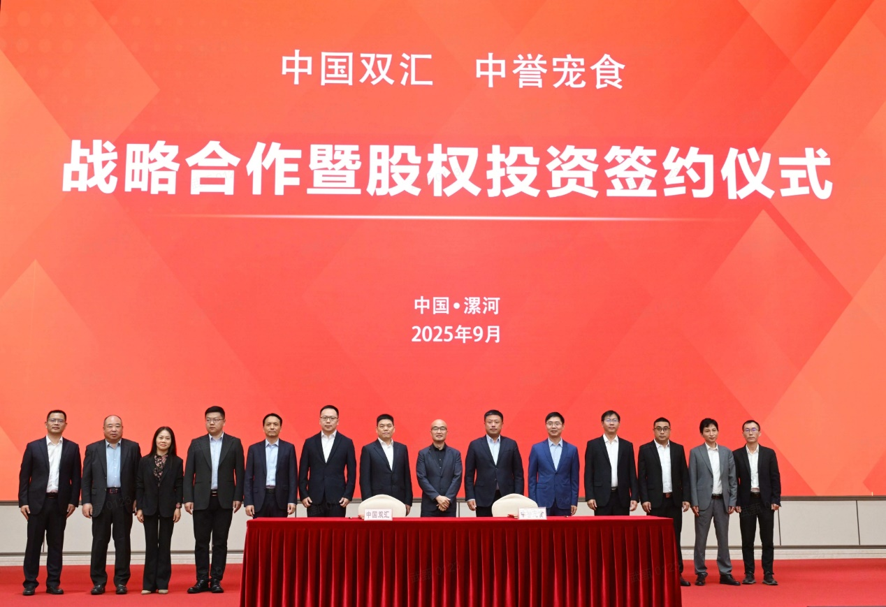 【大河财立方 记者 郝楠楠】9月25日,国内头部宠物食品企业中誉宠物食品(漯河)有限公司(以下简称中誉宠食)官宣完成亿元级B+轮融资,由肉食龙头双汇发展领投、老股东广发乾和跟投。在漯河双汇总部举行战略合作暨股权投资签约仪式上,双汇发展总裁马相杰、中誉宠食董事长安中平等代表签署协议。