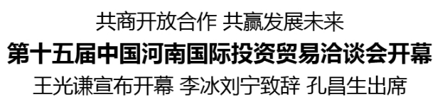 金秋九月,相“豫”中原。9月26日上午,第十五届中国河南国际投资贸易洽谈会在郑州国际会展中心隆重开幕。全国政协副主席、民盟中央常务副主席王光谦致辞并宣布开幕。全国工商联党组成员、副主席李冰,省委书记刘宁致辞。省政协主席孔昌生出席。