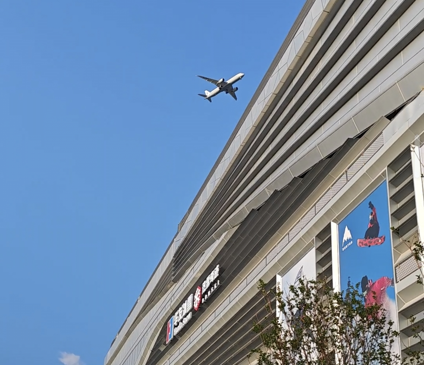 10月1日,记者在深圳·前海冰雪世界场外看到,一架飞机正从商场上方驶过。该冰雪项目于9月29日试营业,与其同期开业的还有该项目所在商场,商场一、二楼已有多家冰雪装备华南首店或深圳首店进驻开业,餐饮等商铺多数也已营业,商场开业率较高。