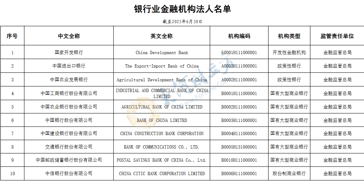 【大河财立方消息】10月9日,国家金融监督管理总局披露了最新版的银行业金融机构法人名单(截至2025年6月末)。