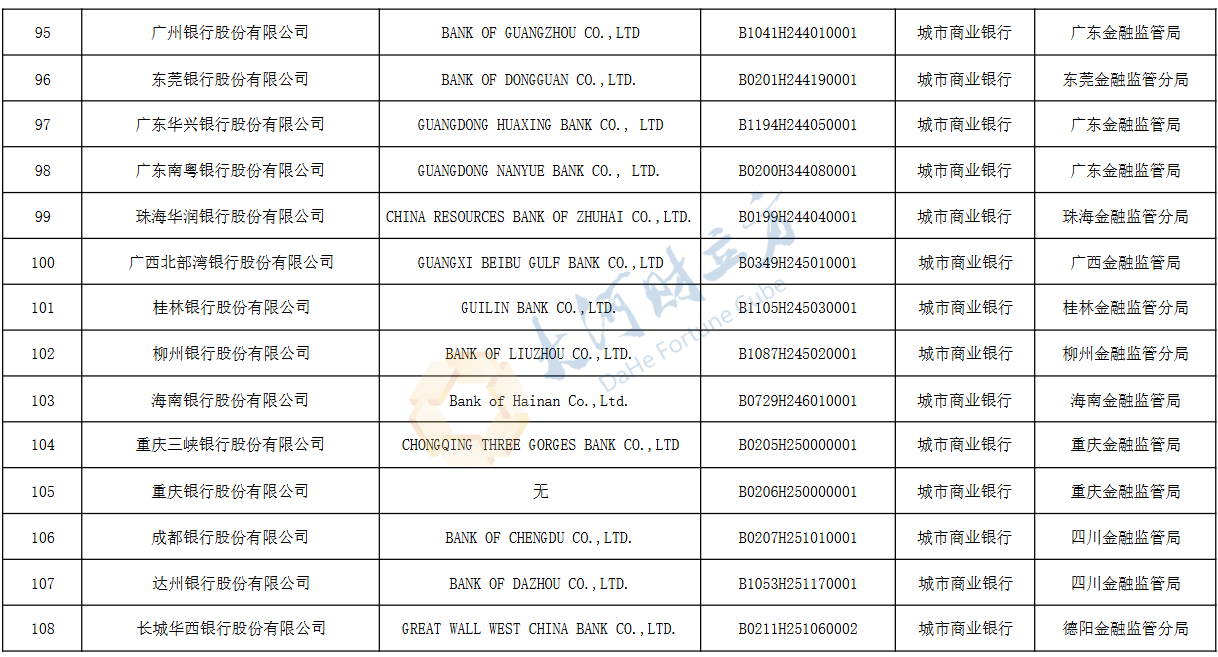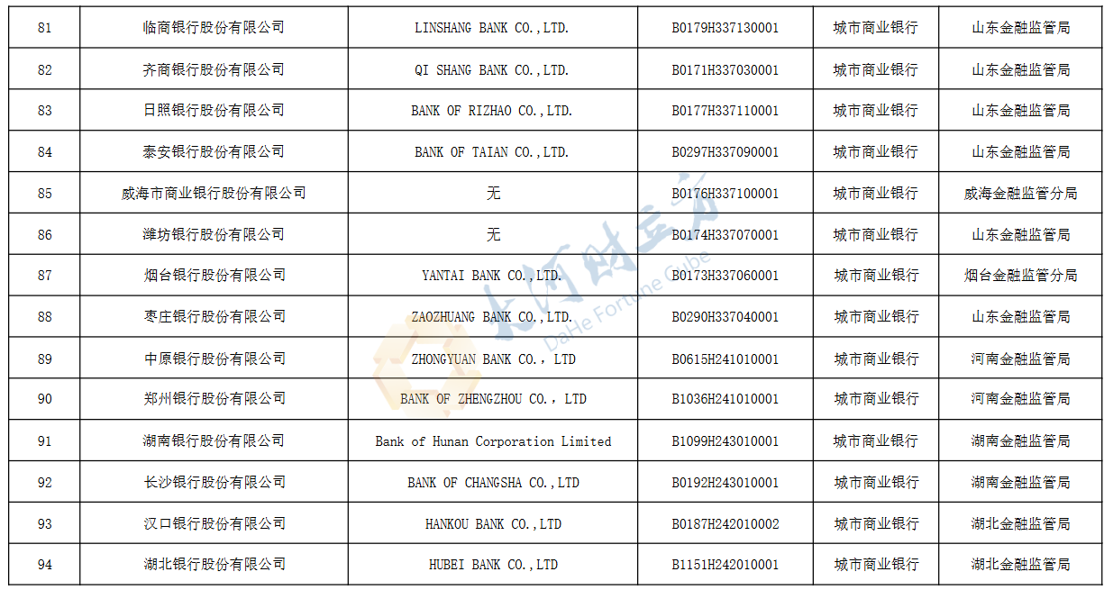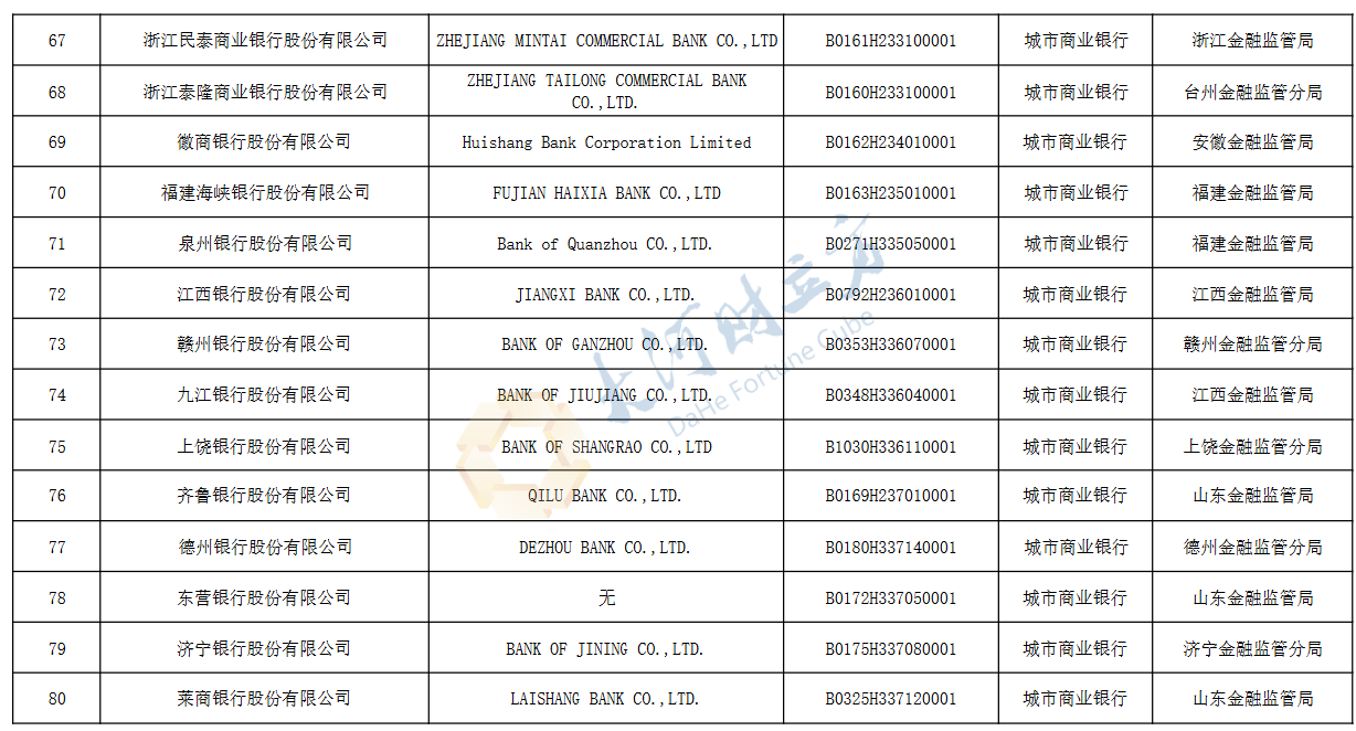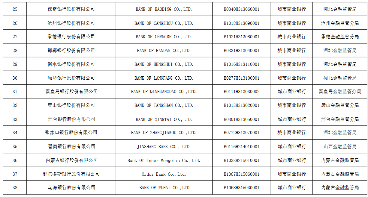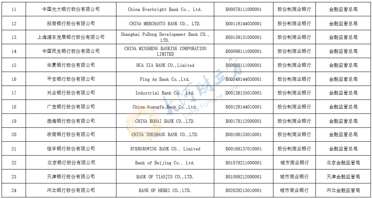 该名单中包括1家开发性金融机构、2家政策性银行、6家国有大型商业银行、12家股份制商业银行等共计4070家银行业金融机构。