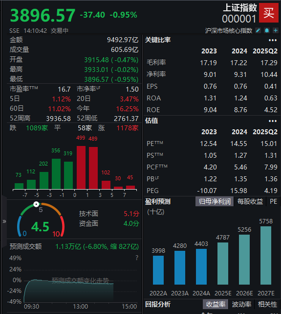 【大河财立方消息】10月10日午后,指数午后加速回调。沪指失守3900点,创业板指下挫跌逾4.00%,深成指跌2.31%。科创50指数跌近5%。沪深京三市下跌个股近2500只。