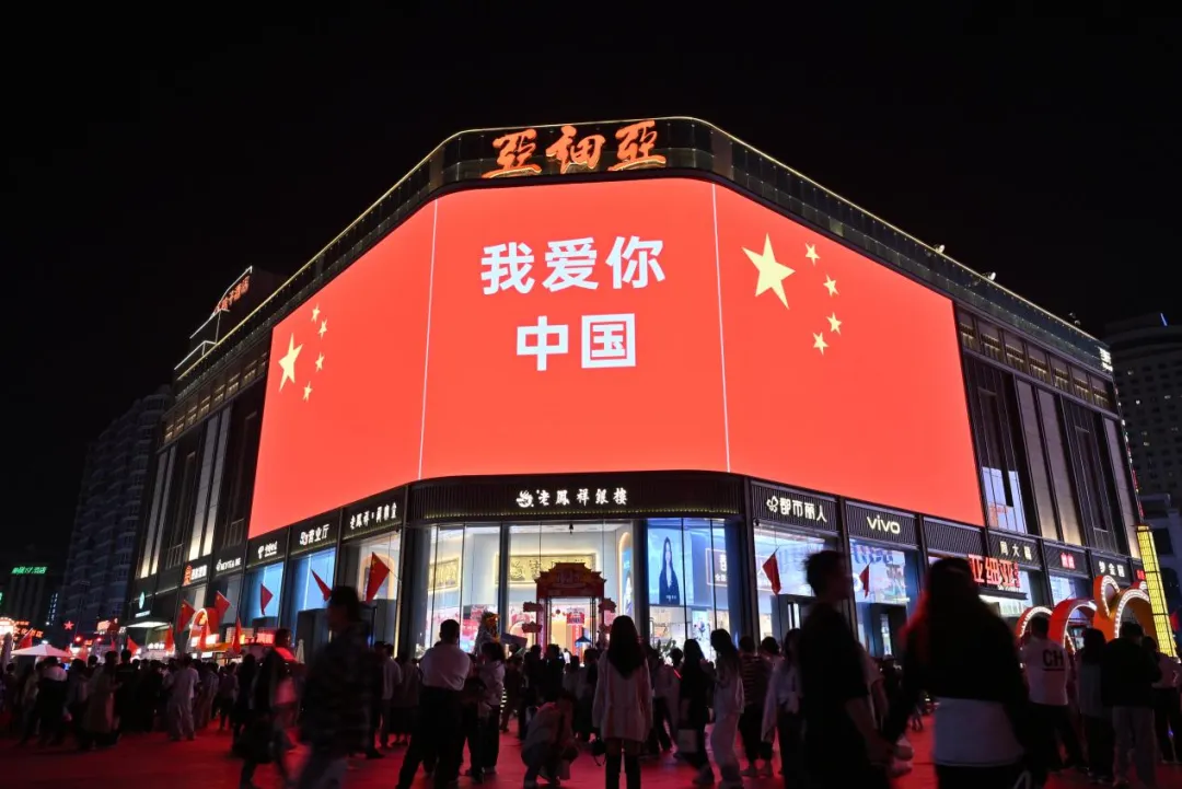 作为二七商圈的重要地标之一,国庆假期期间,“亚细亚之光”的“告白祖国”展示成为市民争相拍照打卡的热门地标,也给众多外地游客留下了深刻印象。一位来自陕西的游客感慨道:“透过这个屏幕,我感受到郑州是一座有温度、有情怀的城市。”