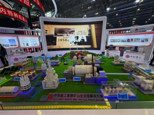 据了解,中信重工展览的绿色智慧矿山全流程解决方案,整合了提升机、破碎机、矿物磨机、高压辊磨机、回转窑等矿山全流程的核心装备,形成了完整的高端智能装备产品矩阵。其中,矿物磨机和提升机稳居国内市场占有率第一、世界前三,获评国家级制造业单项冠军产品。
