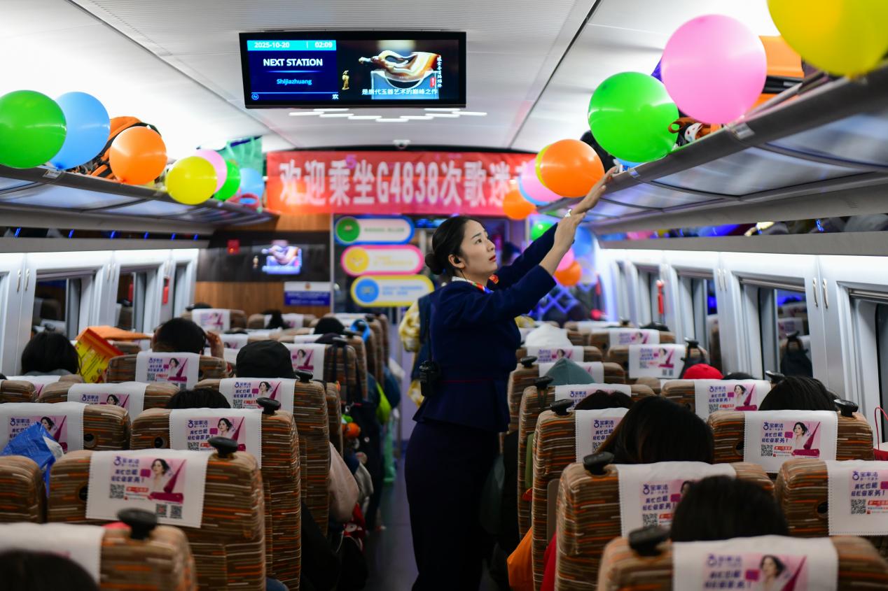“没想到返程还能延续演唱会的快乐,车厢布置太懂我们了!”“到站前的歌曲选得超用心,瞬间被治愈!”“乘务员又贴心又会带动气氛,这趟旅途太值了。”……旅客们纷纷在社交平台分享旅途体验,为精细化出行服务点赞,让列车成为传递喜悦的“移动驿站”。