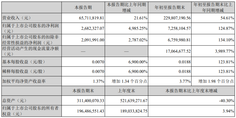 合金投资前三季度营收为2.30亿元,同比增长54.61%;净利润为725.81万元,同比增长124.87%。