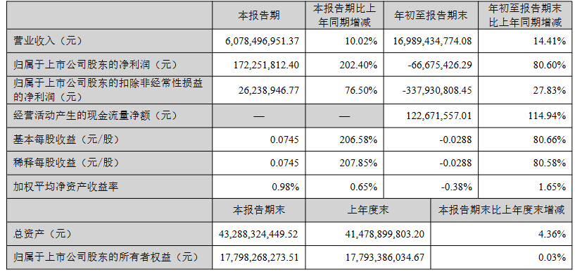 前三季度科大讯飞实现营业收入169.89亿元,同比增长14.41%;归属于上市公司股东的净利润-6667.54万元,上年同期归属于上市公司股东的净利润-3.44亿元;基本每股收益-0.0288元。